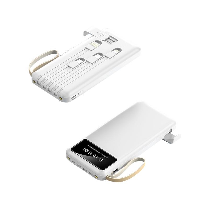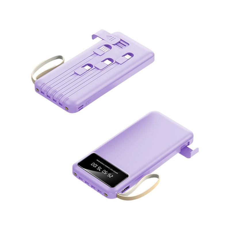The model features a high-quality leather-like finish, a built-in 4-in-1 charging cable, a digital LED display and convenient phone stand. With its clear digital display and 10,000mAh capacity, it ensures your devices stay powered throughout the day.