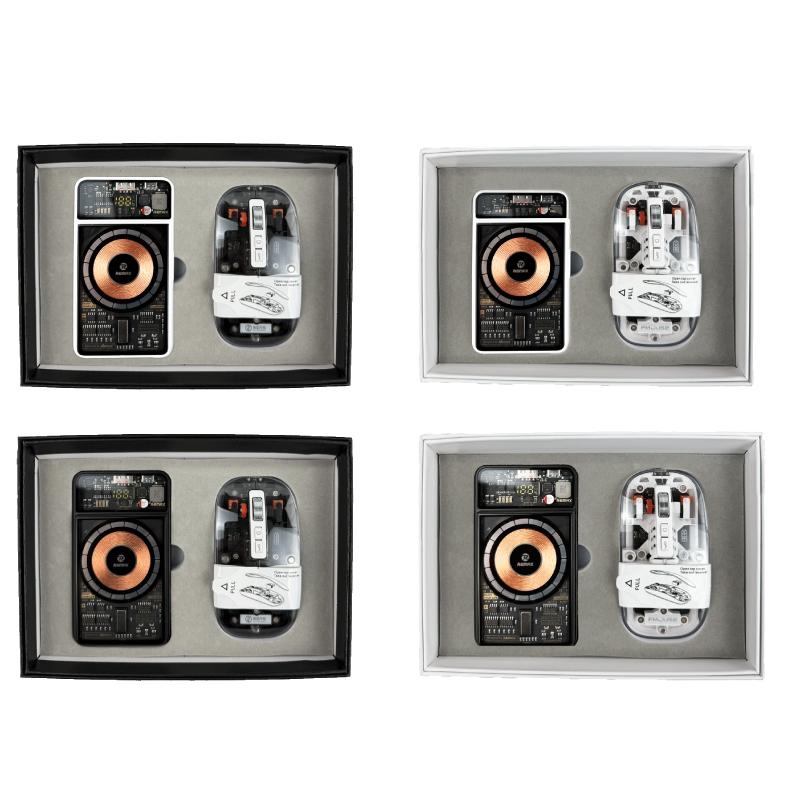 - Transparent Mouse - Powerbank 5000mAh / 10000mAh - Box Size 20x14x3.5cm - Paper bag Price includes logo printing on all items: mouse, powerbank, box, and paper bag