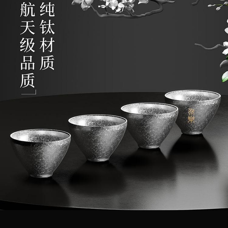 - >99.8% Titanium - 4 x 70ml Teacup - Uncoated. Unpainted. Pure Material All price including printing service for packaging & item