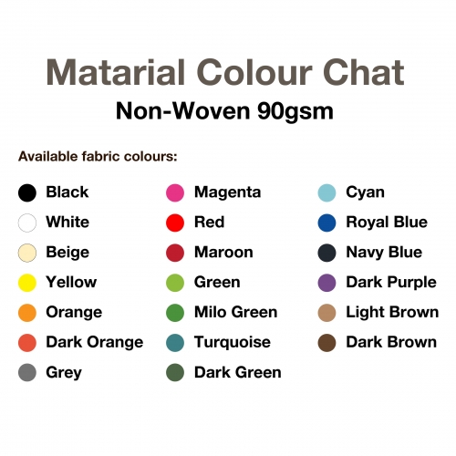 With the flexibility of a slender design, the N01A goody bag can be folded further to save even more space; and likewise, it may also be opened up to its physical limit of 28cm width by 33cm height. For a portable fit, the N01A expands to a capped of 8cm diameter which fulfils the aforementioned corporate gifts. Understanding the dimensional structures and sizing guide of any non-woven bags is equally important in order to fit your complementary prizes, and in N01A's case, this non-woven bag is A4 in supply reference size.