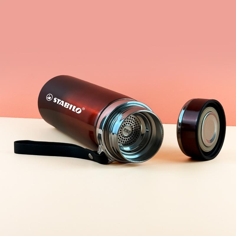 | Vacuum Flask Bottle | 800ml durable 316 stainless steel bottle with a rotatable cap opening and convenient carry strap. Color: Black / Gold / Silver / Blue / Red; Size: Approx. 32cm, Logo Printing |