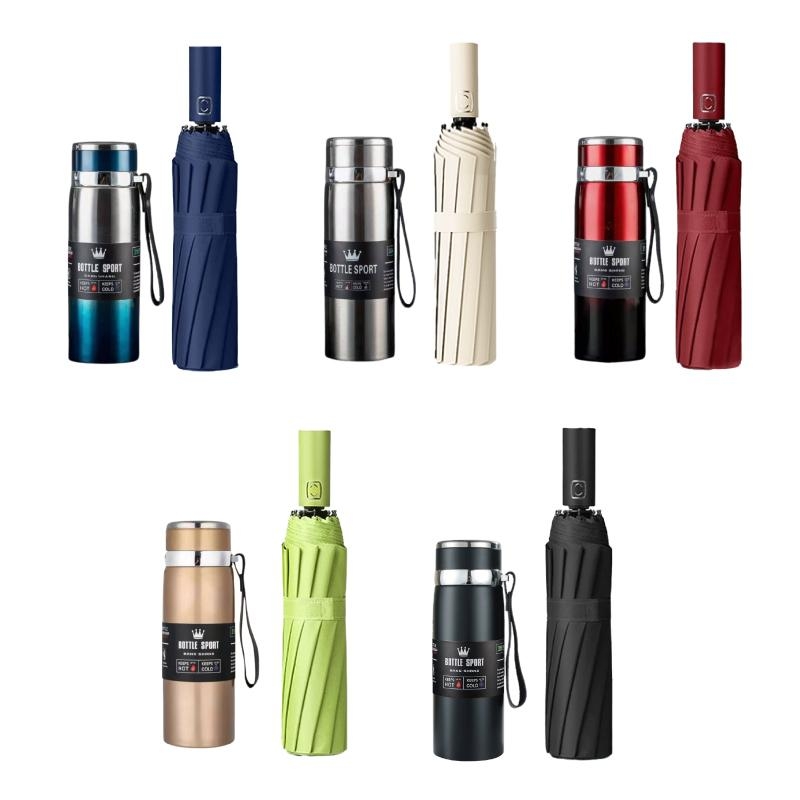 | Foldable Automatic Umbrella | Made from black glue fabric with a 24-rib windproof design, non-slip handle, and UV protection. Color: Black / Navy / Beige White / Red Wine / Green; Size: Approx. 32cm, Logo Printing |
